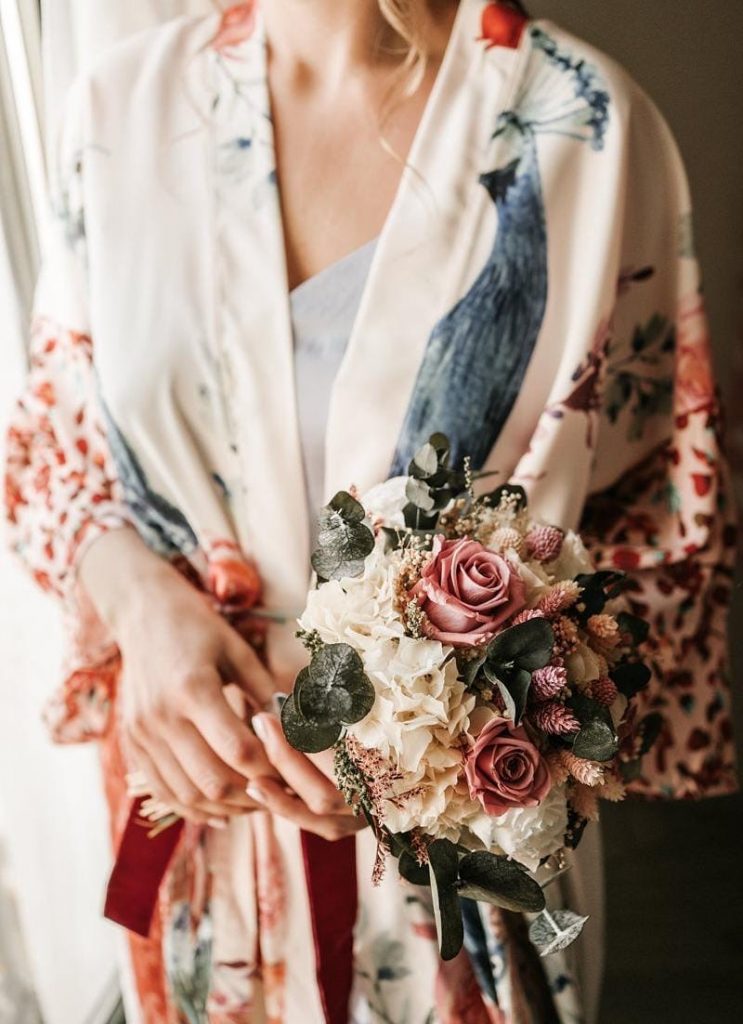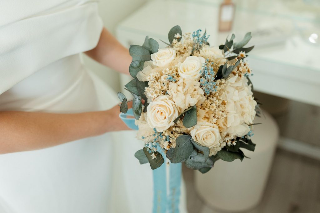 Lavanda, eucalipto o manzanilla preservada son algunas de las flores más habituales en este estilo. Es una elección muy acertada para bodas al aire libre, celebraciones en entornos naturales o novias que buscan un ramo con personalidad, fresco y poco convencional.
