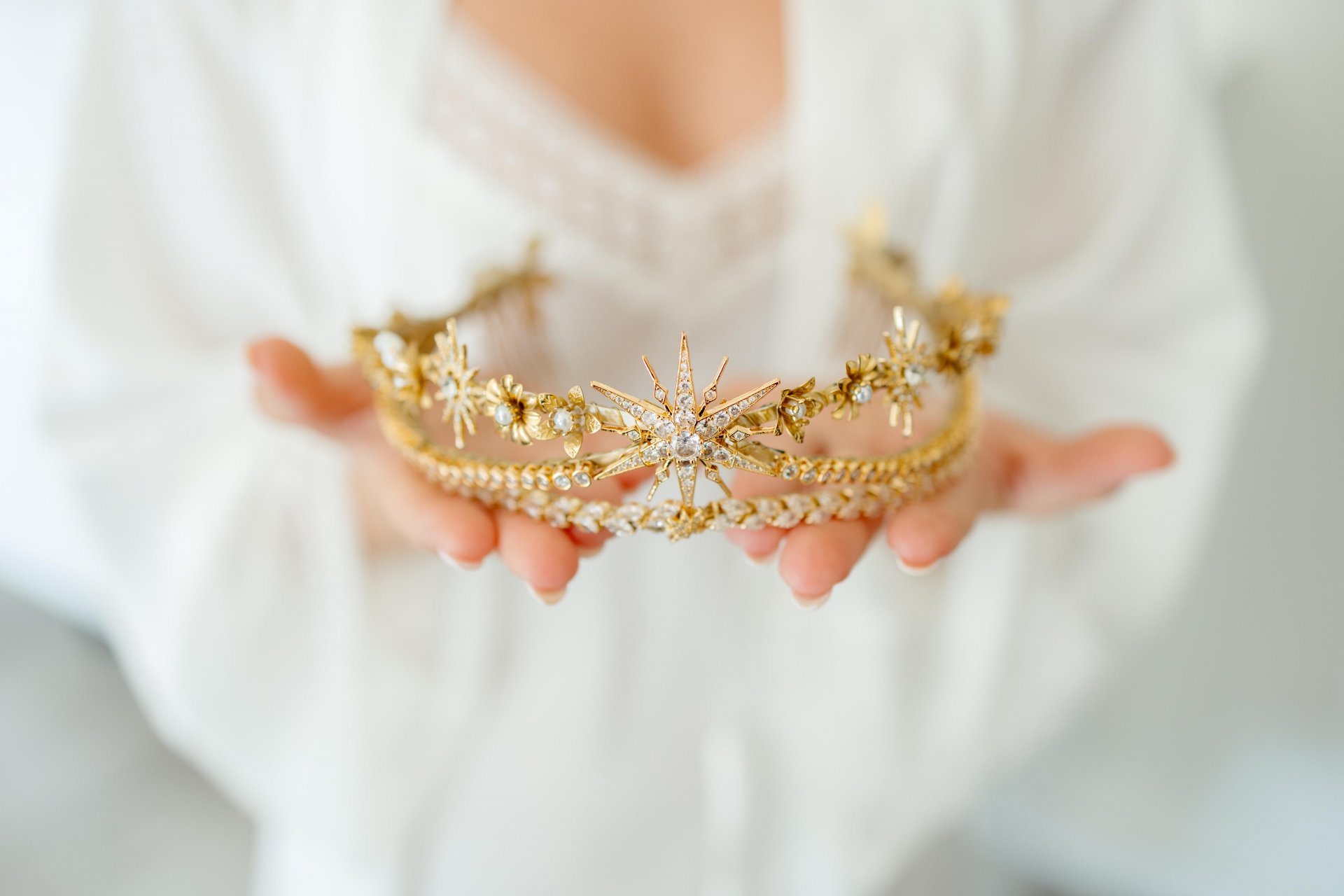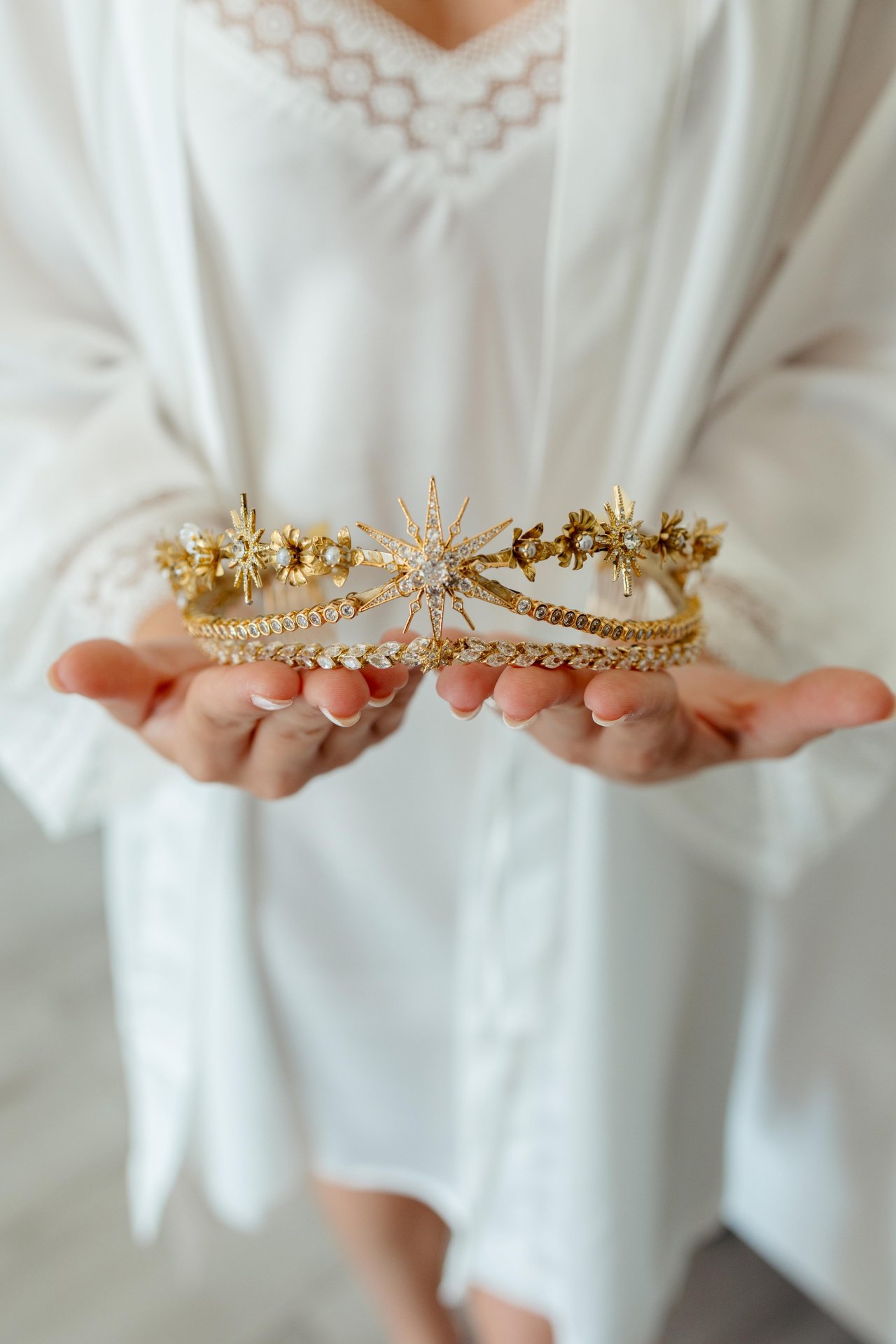 Tiara metálica realizada totalmente a mano. Con cristal facetado engarzado y cristal de swarovski.